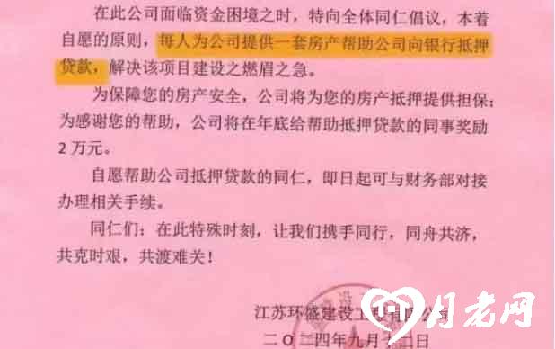 倡議書稱,“本著自愿的原則,每人為公司提供一套房產幫助公司向銀行抵押貸款,解決該項目建設之燃眉之急”。2024年9月13日上午,記者致電該公司辦公電話及多個招聘聯系方式,均無法接通。隨后,記者致電高淳區勞動保障監察大隊,對方表示只了解到涉事公司發了倡議書,但具體情況并不清楚。高淳區網信辦表示,已注意到此事,后續將會有正面回應發布。