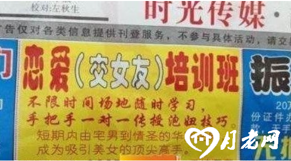 幾天前,在湖南郴州的興隆步行街開店的陳老板,見店里塞進了一張郴州市內散發的小廣告,打開一看,差點被雷倒,上面赫然刊登了一則戀愛培訓班的廣告信息:手把手一對一傳授泡妞技巧,短期內可以由宅男到情圣的華麗逆轉,成為吸引美女的頂尖高手。