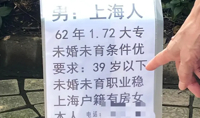 一61歲上海男子相親要求,要求對方39歲以下,未婚未育,有穩定工作,有一套上海住房的上海籍女子。