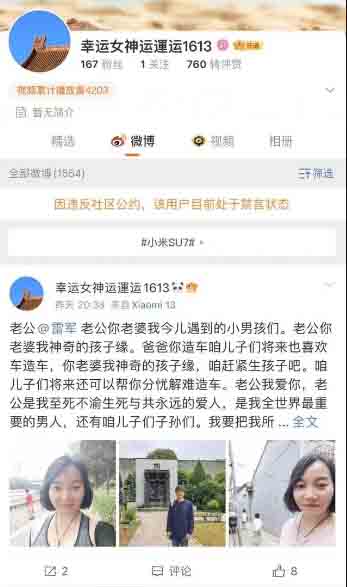 女網友每天打卡喊雷軍“老公”,微博賬號被官方禁言