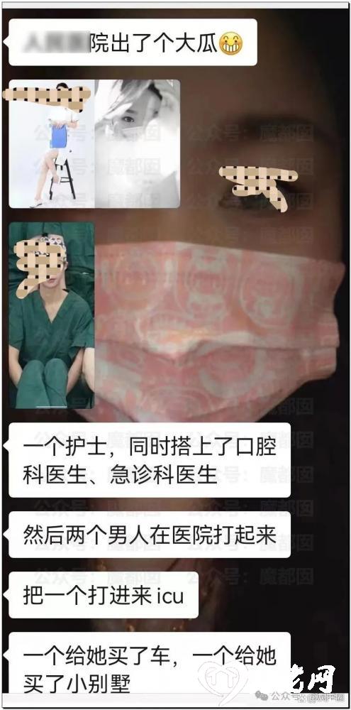 網傳這個97年、來自重慶的女護士,是一個時間管理大師,同時與兩有婦之夫交住,當了雙方的小三,同時和同為本醫院的兩個主任好上了。一個給她買了房子,另一個為她買了車,買房子這個主任去看她的時候,碰上另一主任醫生也在房子里。